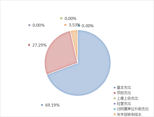 2021年本年支出合計367.86萬元,其中:基本支出254.52萬元,占69.19%;項目支出100.38萬元,占27.29%;上繳上級支出0.00萬元,占0.00%;經(jīng)營支出0.00萬元,占0.00%;對附屬單位補助支出0.00萬元,占0.00%;年末結(jié)轉(zhuǎn)和結(jié)余12.97萬元,占比3.53%。