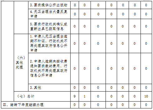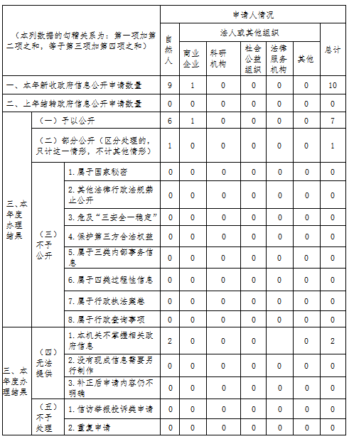 (二)今年我局共收到依申請(qǐng)公開件10個(gè),均已辦結(jié)。我局嚴(yán)格按照政府信息公開申請(qǐng)辦理答復(fù)相關(guān)規(guī)定,建立健全依申請(qǐng)公開辦理答復(fù)制度,在依申請(qǐng)公開答復(fù)書中明確答復(fù)主體和答復(fù)時(shí)限,依法保障人民群眾對(duì)政府信息的知情權(quán),全面提升政府信息公開申請(qǐng)辦理工作質(zhì)量。