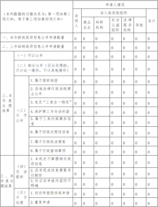 嚴格按照相關(guān)規(guī)定扎實做好依申請公開工作,持續(xù)規(guī)范依申請公開接收、登記、辦理等各項流程。2024年我局未收到依申請公開政府信息與不予公開政府信息。