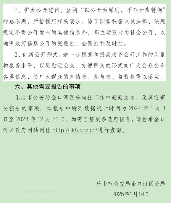 樂(lè)山市公安局金口河區(qū)分局2024年政府信息公開工作年度報(bào)告