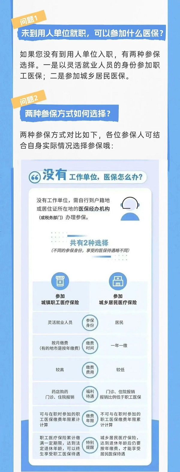 如果您正在待業(yè)期間或者自主創(chuàng)業(yè)、做個(gè)體工商戶亦或是從事未和用人單位簽訂勞動(dòng)合同的工作醫(yī)保怎么辦呢?